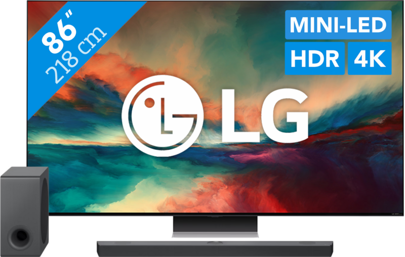 Met deze bundel geniet je van haar scherp beeld en intens geluid bij je favoriete film of serie.Dankzij mini-led geniet je van een krachtig contrast en zie je nauwelijks grijze gloed om heldere objecten.De QNED techniek en het 10 bit HDR scherm zorgen voor een rijke, gedetailleerde kleurweergave.De bundel beschikt niet over achterspeakers, waardoor je minder een surround effect creëert.