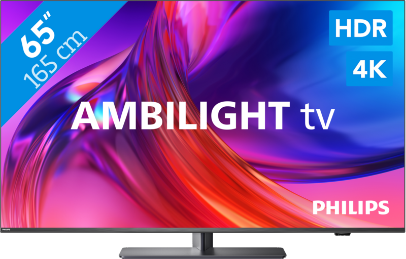 Je bekijkt met deze tv realistische en kleurrijke HDR beelden dankzij het 10 bit paneel, dat 1 miljard kleuren weergeeft.Ambilight verlicht de wand achter de tv in de kleuren van het beeld en zorgt voor een ontspannen kijkervaring.Het Android TV besturingssysteem brengt live televisie, apps en internet overzichtelijk samen.De tv heeft geen draaibare voet waarmee je hem op je kijkpositie richt.