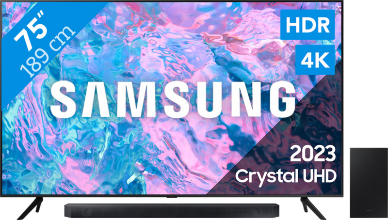 Samsung Crystal UHD 75CU7100 (2023) + Soundbar televisie