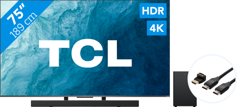TCL QLED 75C731 (2022) + Soundbar + Hdmi kabel korting?